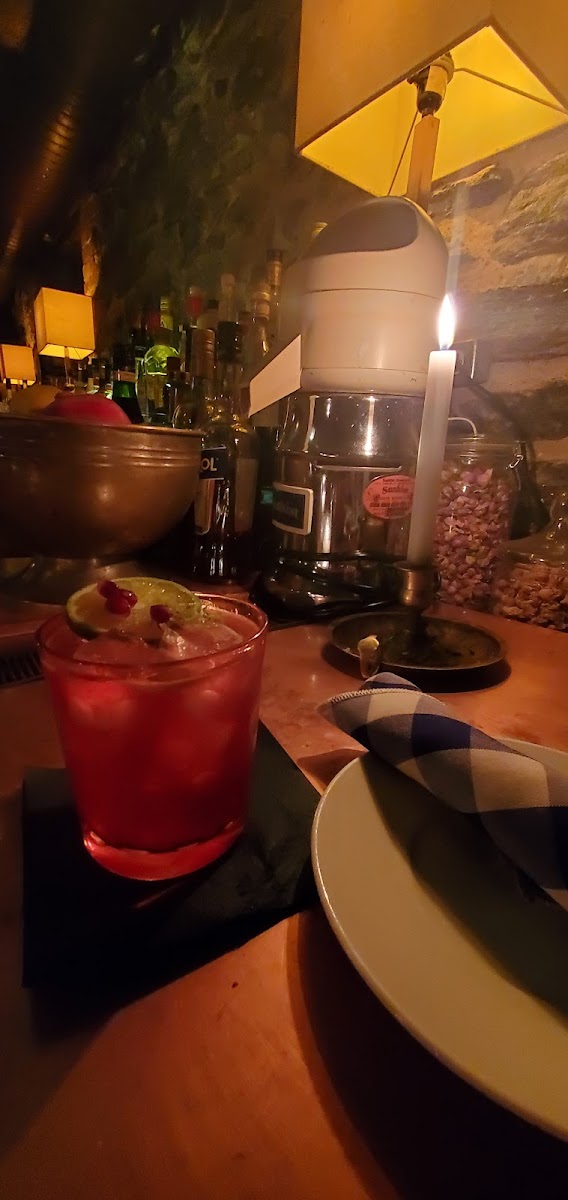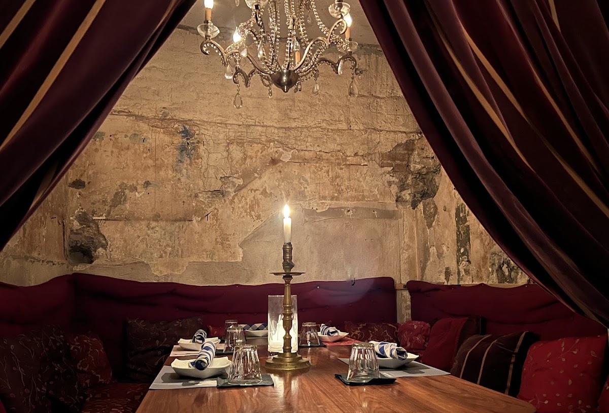 The atmosphere plays just as big a role as the food. The space is dim, with stone-textured walls and warm lighting that makes conversations feel private even when the room is full. It’s the kind of place people recommend in reviews for a romantic evening or a quiet catch-up with friends, and that reputation is well-earned. Background music stays low, and tables are spaced closely enough to feel lively but not cramped.
