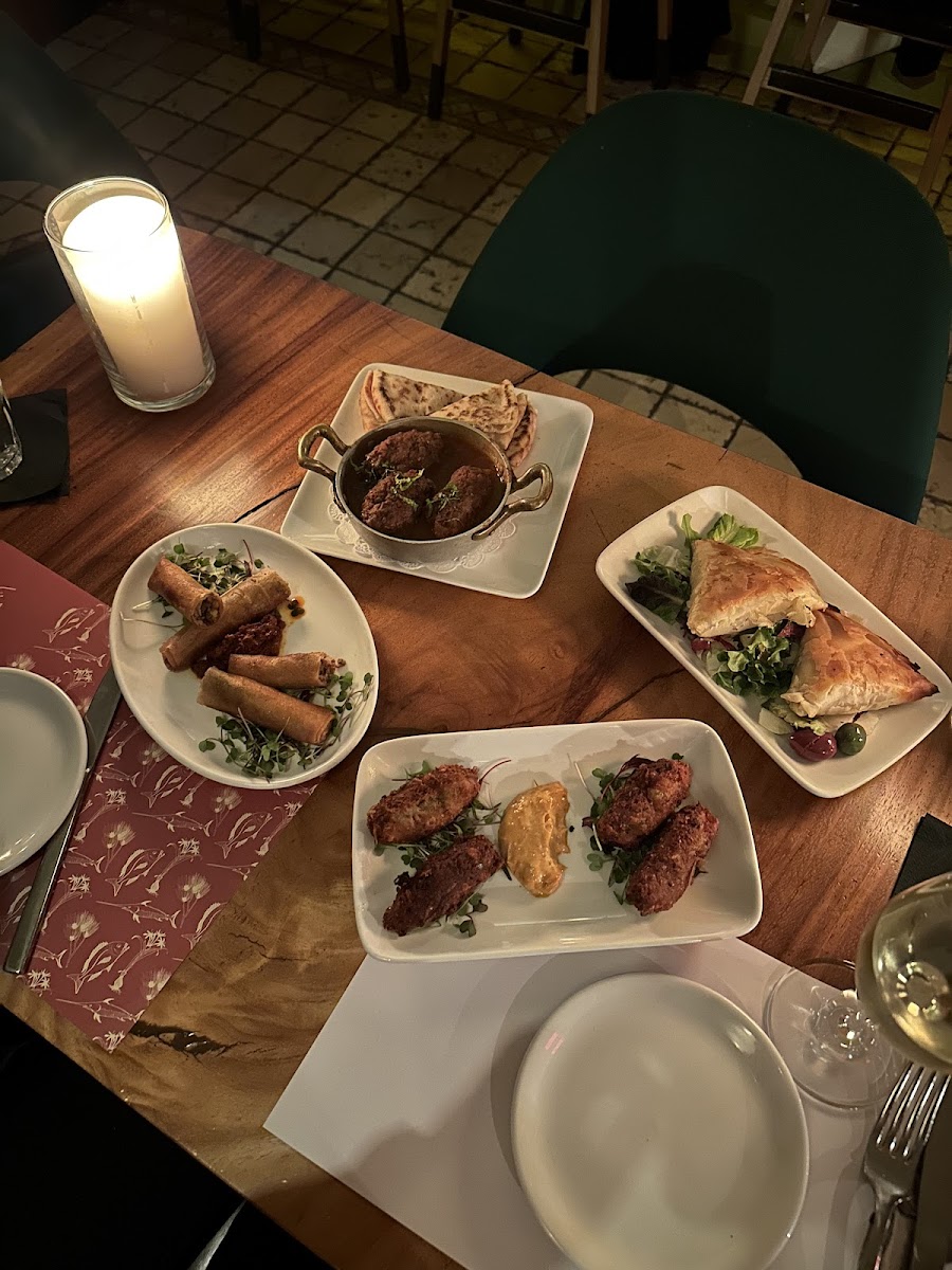 The wine list is compact but thoughtful, focusing on Mediterranean regions that pair naturally with the food. Israeli and Spanish wines feature prominently, offering earthy reds and crisp whites that complement the spices without overpowering them. If wine isn’t your thing, the non-alcoholic options include herbal teas and lightly sweetened drinks that feel curated rather than an afterthought.